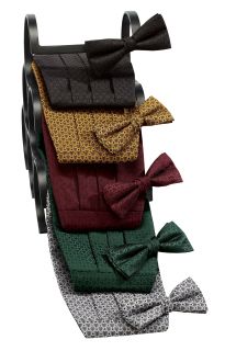 Solid Silk Bow Tie & Pocket Square Set Matching Silk Knots (cufflinks)