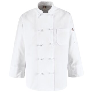 - Finish: Eight Pearl Button Chef Coat